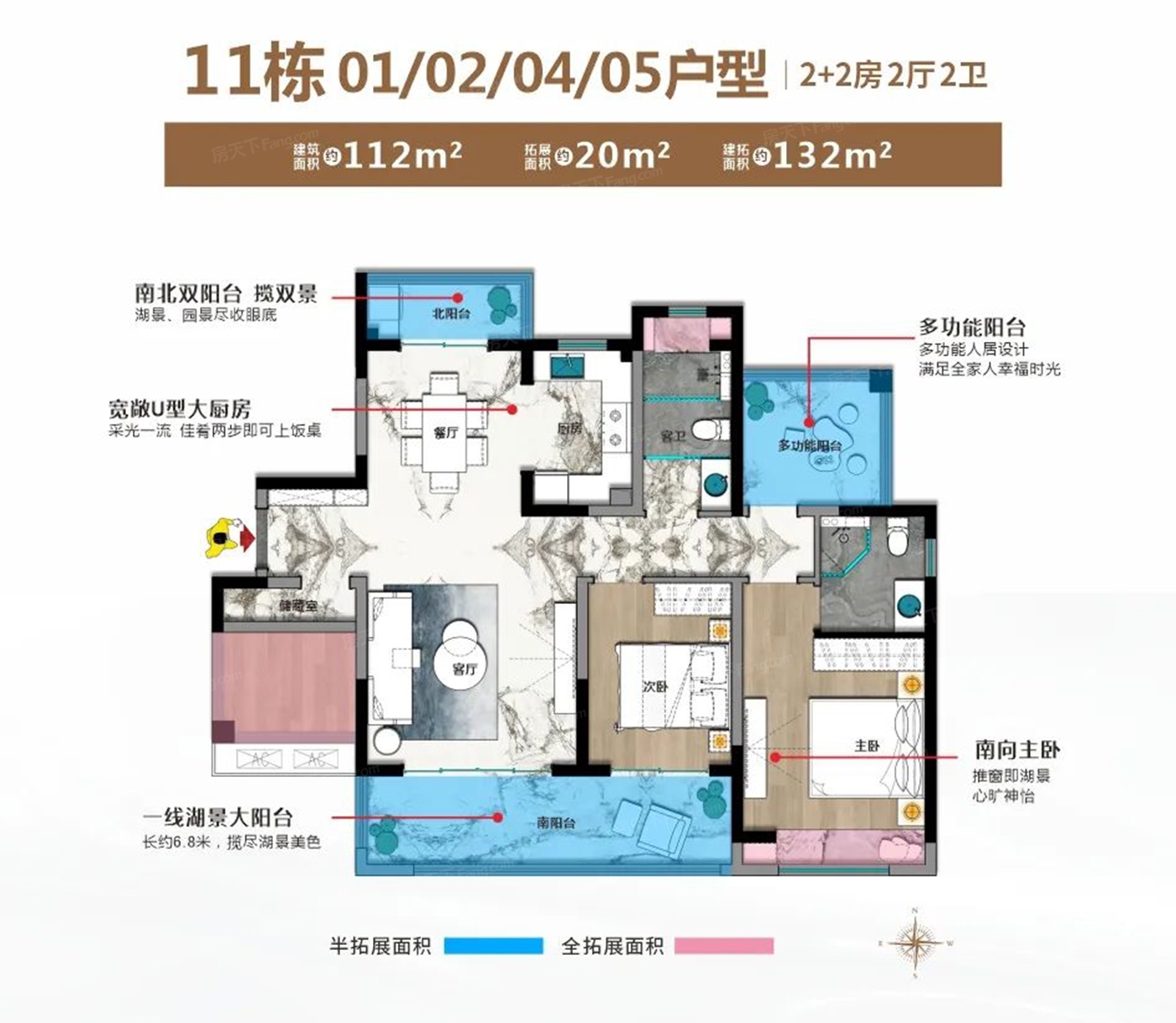 2室2厅2卫开元·西湖春天 平层户型·建面/112㎡