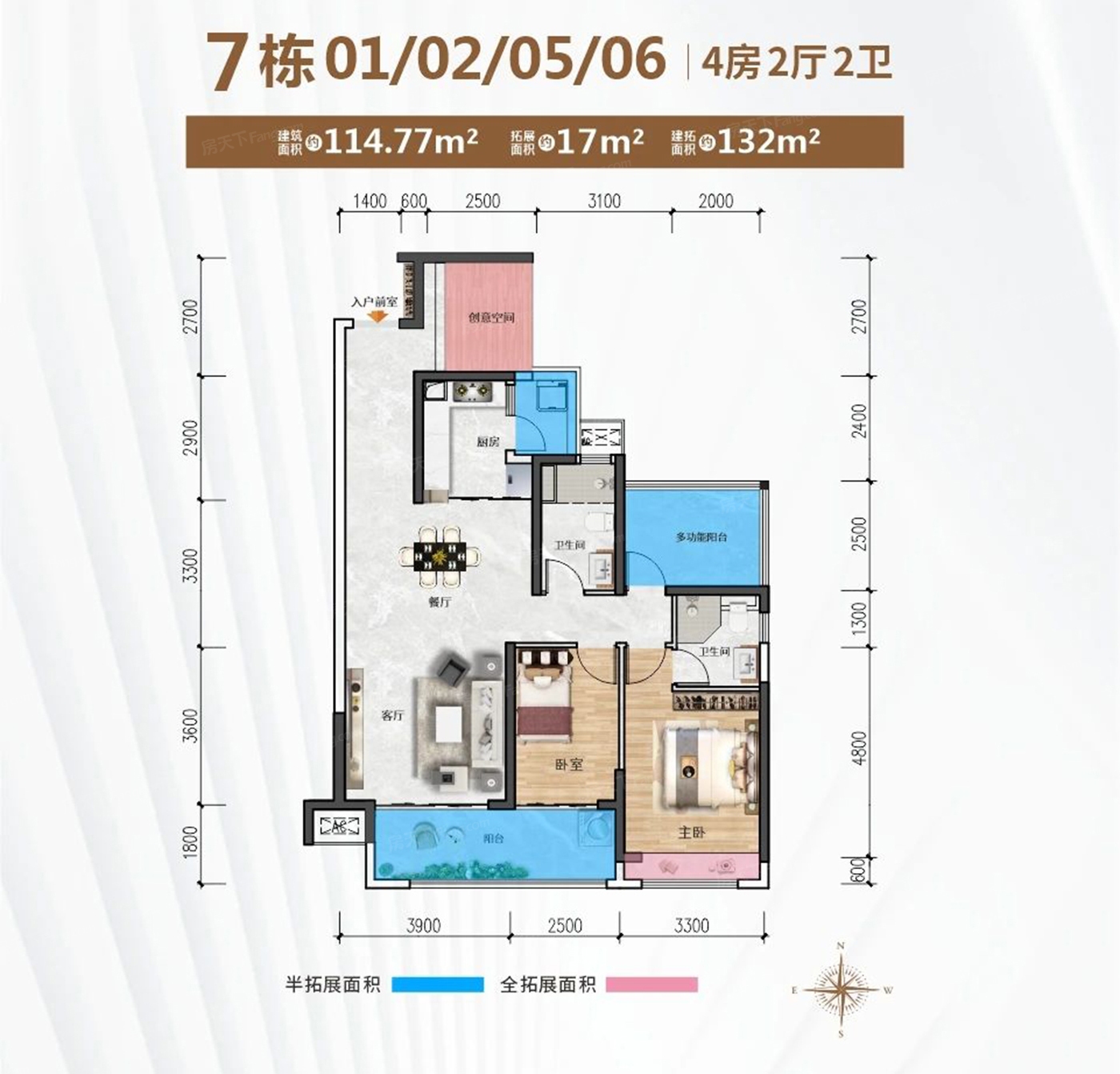 4室2厅2卫开元·西湖春天 平层户型·建面/114㎡