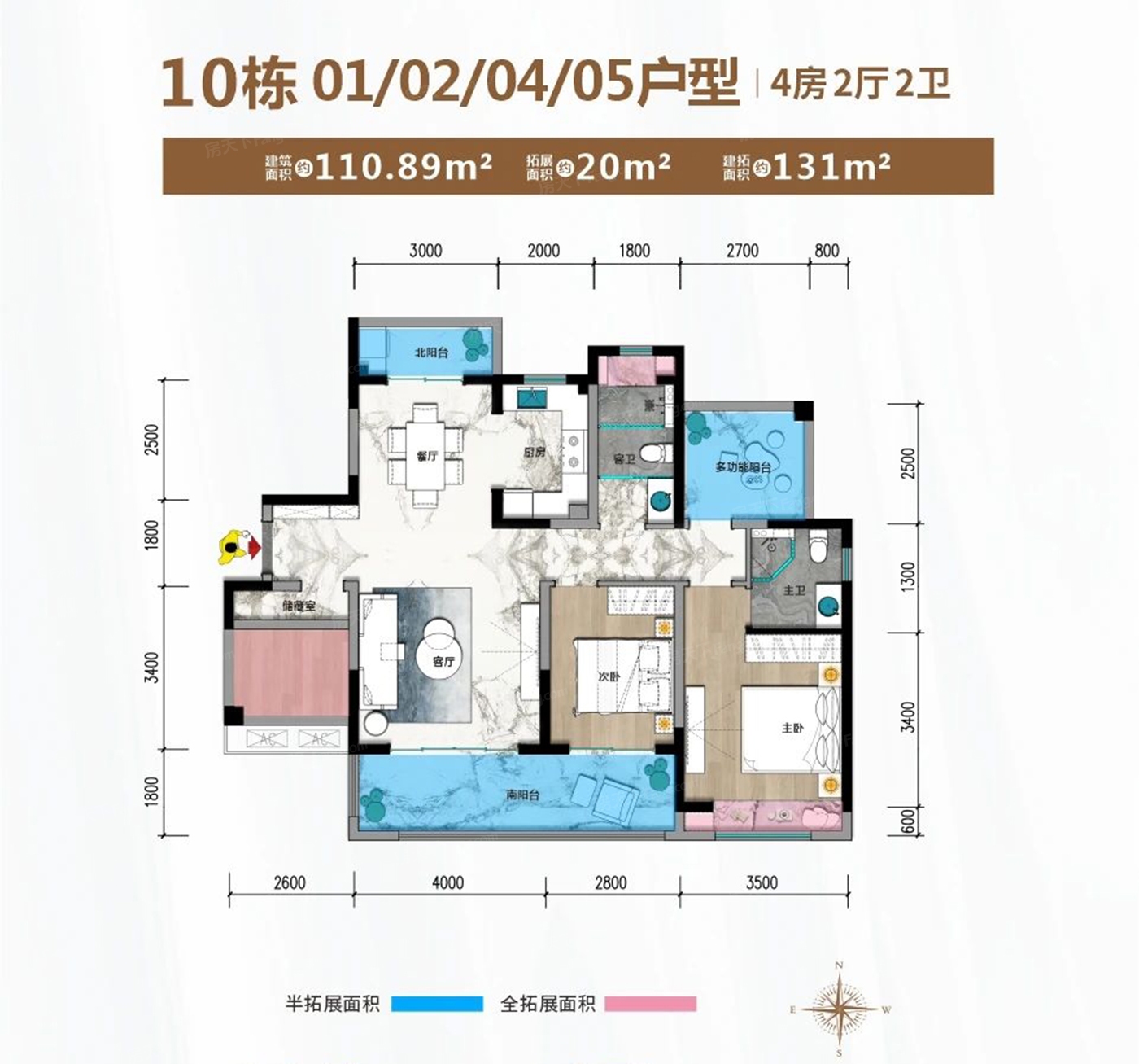 4室2厅2卫开元·西湖春天 平层户型·建面/110㎡