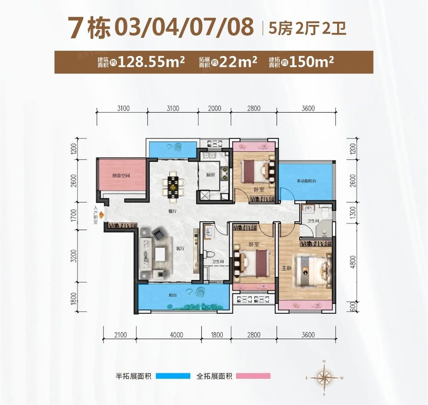 5室2厅2卫开元·西湖春天 平层户型·建面/128㎡
