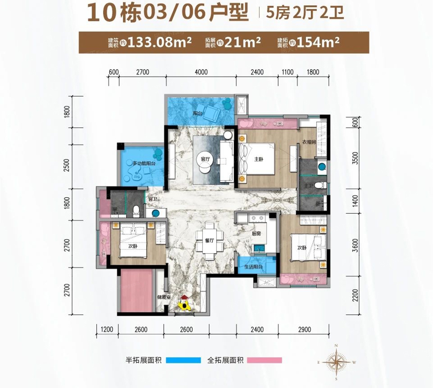 5室2厅2卫开元·西湖春天 平层户型·建面/133㎡